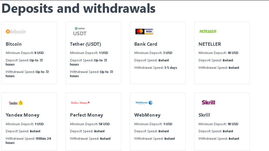 - E-Wallets: Skrill, Neteller, Perfect Money, WebMoney — instant