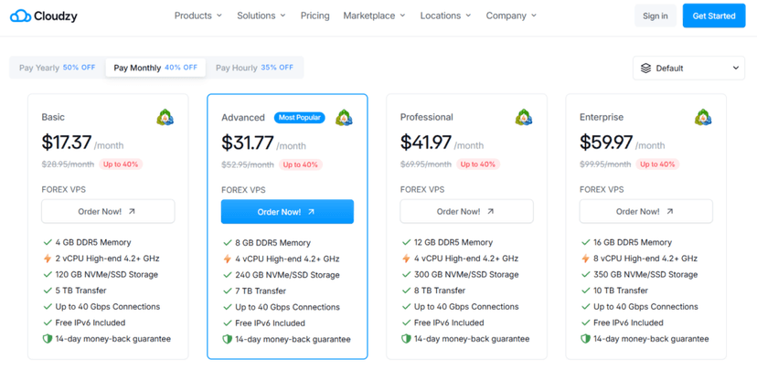 Cloudzy Forex VPS Pricing Overview