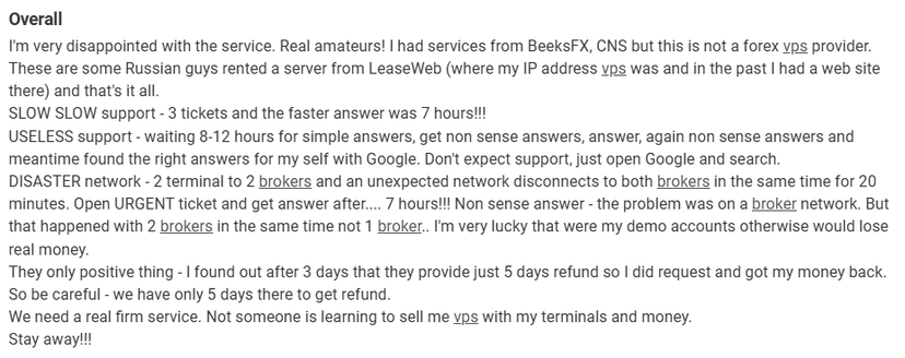 MyForexVPS offers a shorter refund window, of 7 days. Although previous reviews suggest that it might be shorter than this.