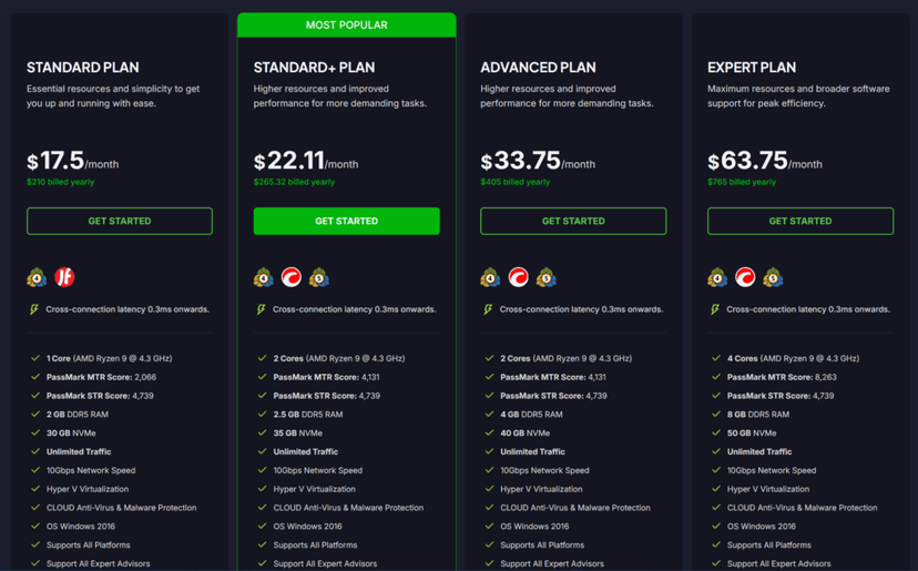 TradingFXVPS Plans